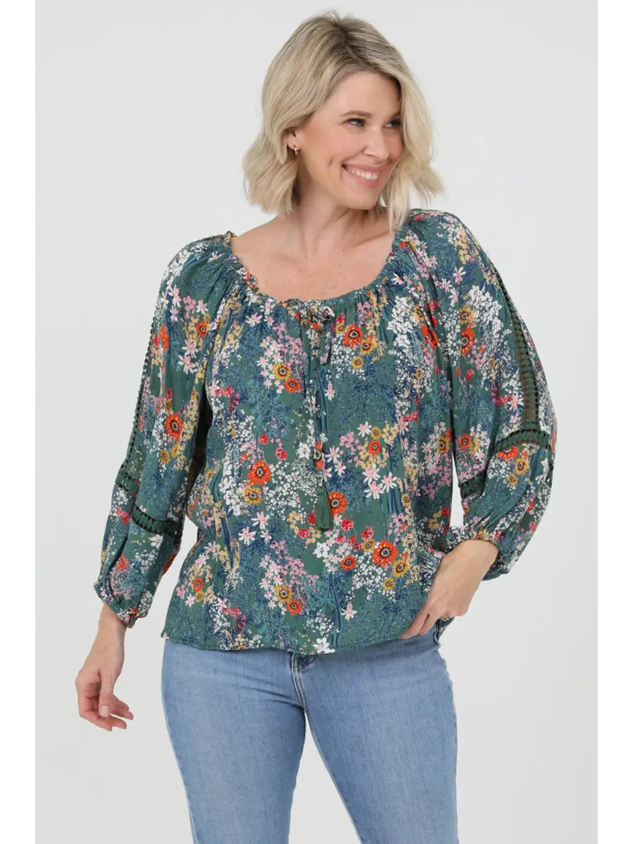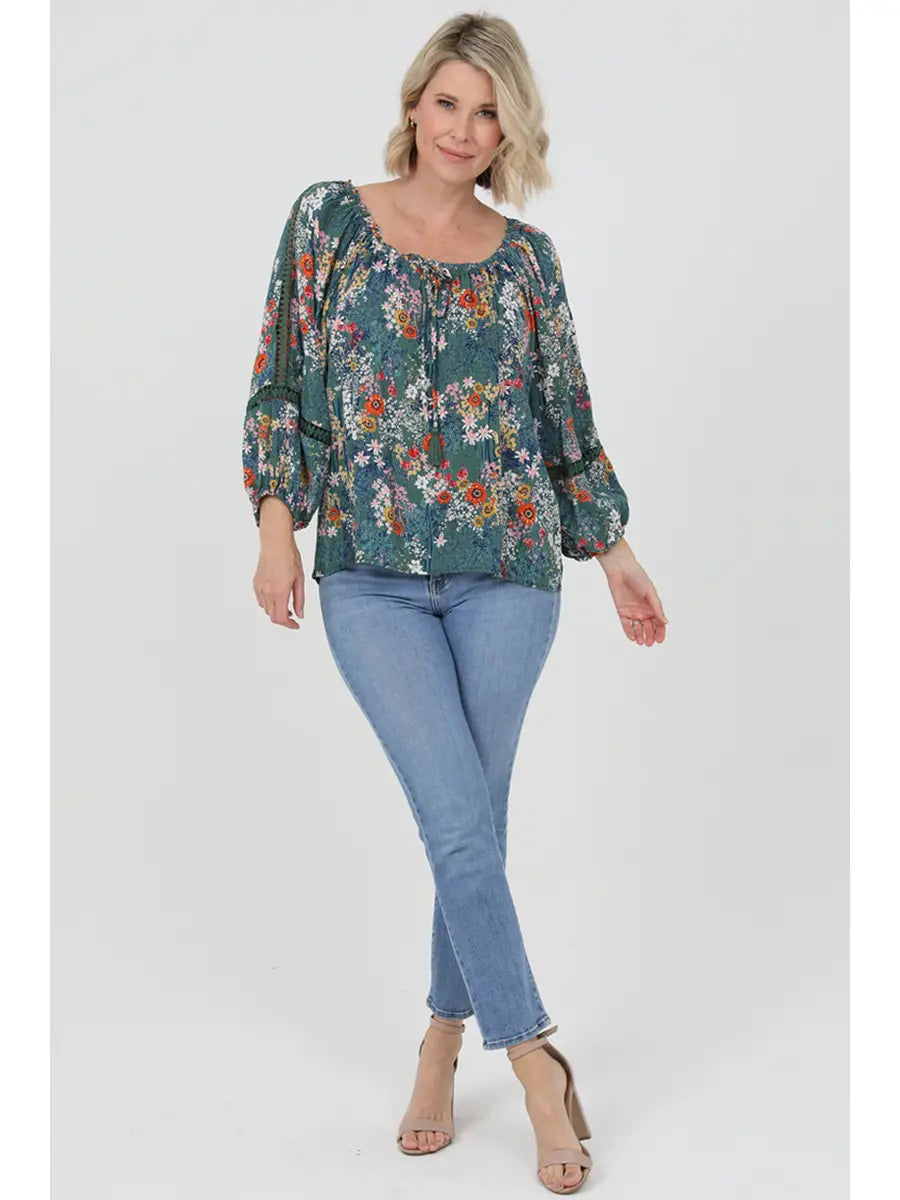 Blouse with Lace Insets On Sleeves
