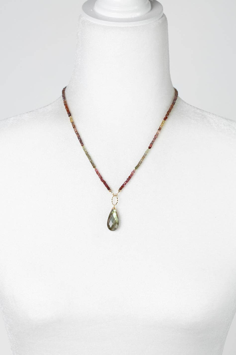 Let yourself be captivated by the stunning beauty and sophistication of the Sapphire Collection. Crafted with gold filled metals and hand selected materials.* Gold Filled (lead and nickel free)* Sapphire, Labradorite* 19-21", adjustable with gold filled lobster claw clasp* We hand select our natural materials, thus there may be slight variations in color and/or size that will not detract from the overall aesthetic* Our unique handcrafted designer jewelry for women is made in America, with each design created individually in our personal design studio in Floyd VA USA