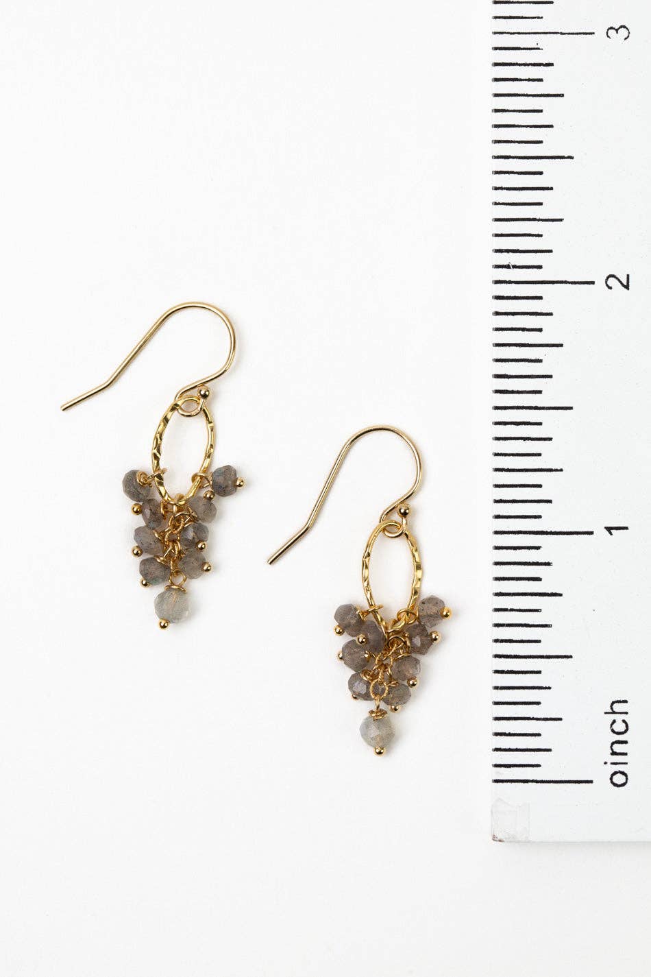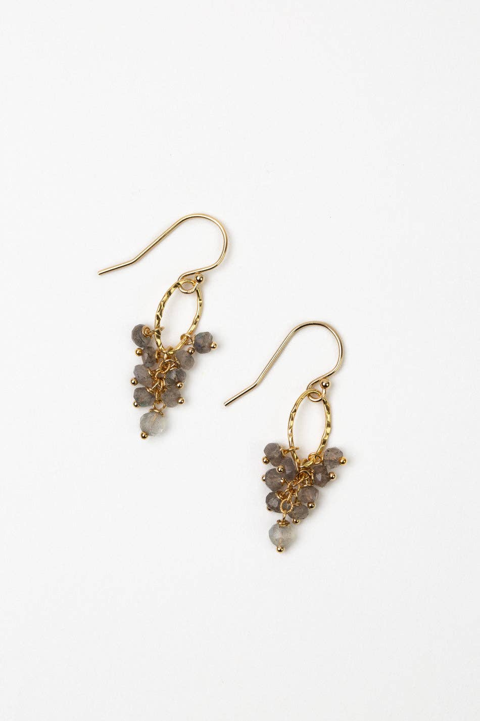 Let yourself be captivated by the stunning beauty and sophistication of the Sapphire Collection. Crafted with gold filled metals and hand selected materials.* Gold Filled (Lead & Nickel Free)* Labradorite* 1.25" with gold filled ear wires* We hand select our natural materials, thus there may be slight variations in color and/or size that will not detract from the overall aesthetic.* Our unique handcrafted designer jewelry for women is made in America, each design created individually in our personal design studio in Floyd, VA USA