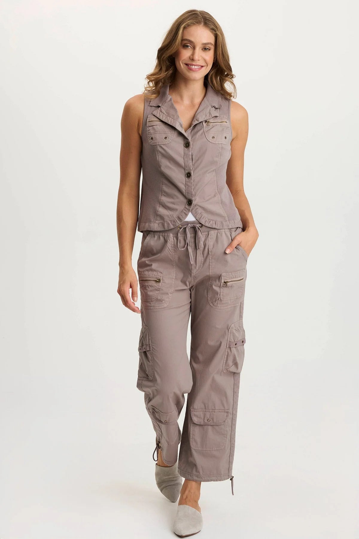 SHELTON POPLIN/RIBBED ZIPPER POCKET VEST